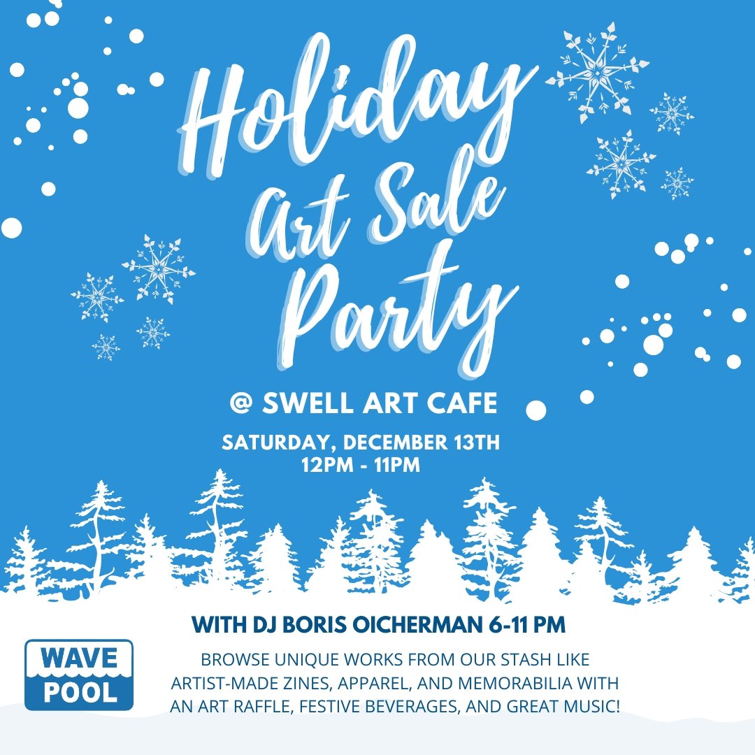 Join us at SWELL for Wave Pool's Holiday Arts Sale and get yourself and your loved ones a present! Browse unique prints from our stash, artist-made zines, apparel, memorabilia, and other gifts while enjoying Eggnog or Glühwein. There will be an art raffle, and a special bonus: Executive Director Boris Oicherman will be on stage spinning dub and techno vinyl from 6–11pm!